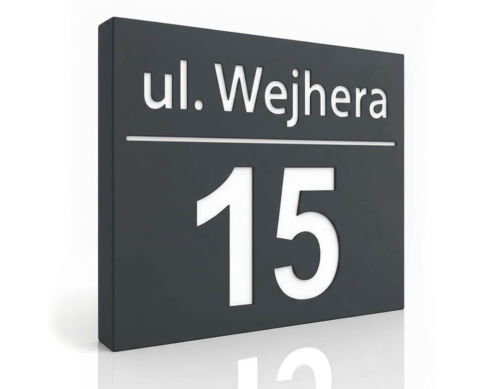 • Podświetlana tabliczka adresowa LED, (numer na dom, ogrodzenie lub płot), wykonana z wysokiej jakości tworzywa Dibond.